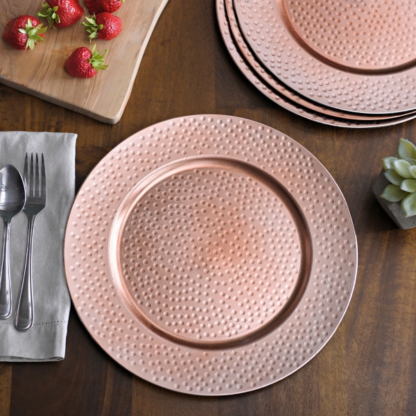 Alchemade copper metallic 13 inch decorative charger plate. I like that the outer rim of the charger plates are hammered and the center is not. Williams sonoma hammered copper charger plate 12 3/4 new. Each hammered charger plate is hand crafted by skilled artisans. I like random shapes but you can do any kind.